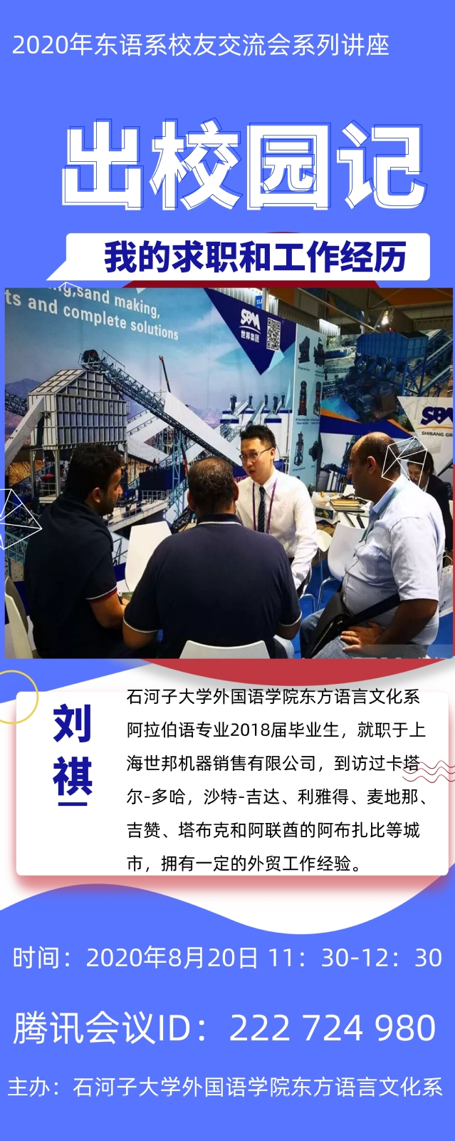 2020年8月26日,东语系开展了第一场线上校友交流会,78名师生参加了本次讲座。