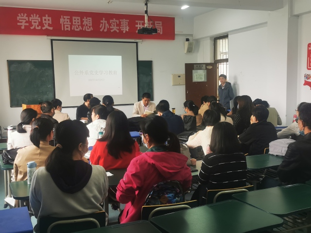 公外系教工第一党支部、第二党支部在2021年4月21日周三下午在会一西414室召开党史学习教育,公外系全体教师参加。学习教育由第一支部副书记李波和第二支部书记李成主持。